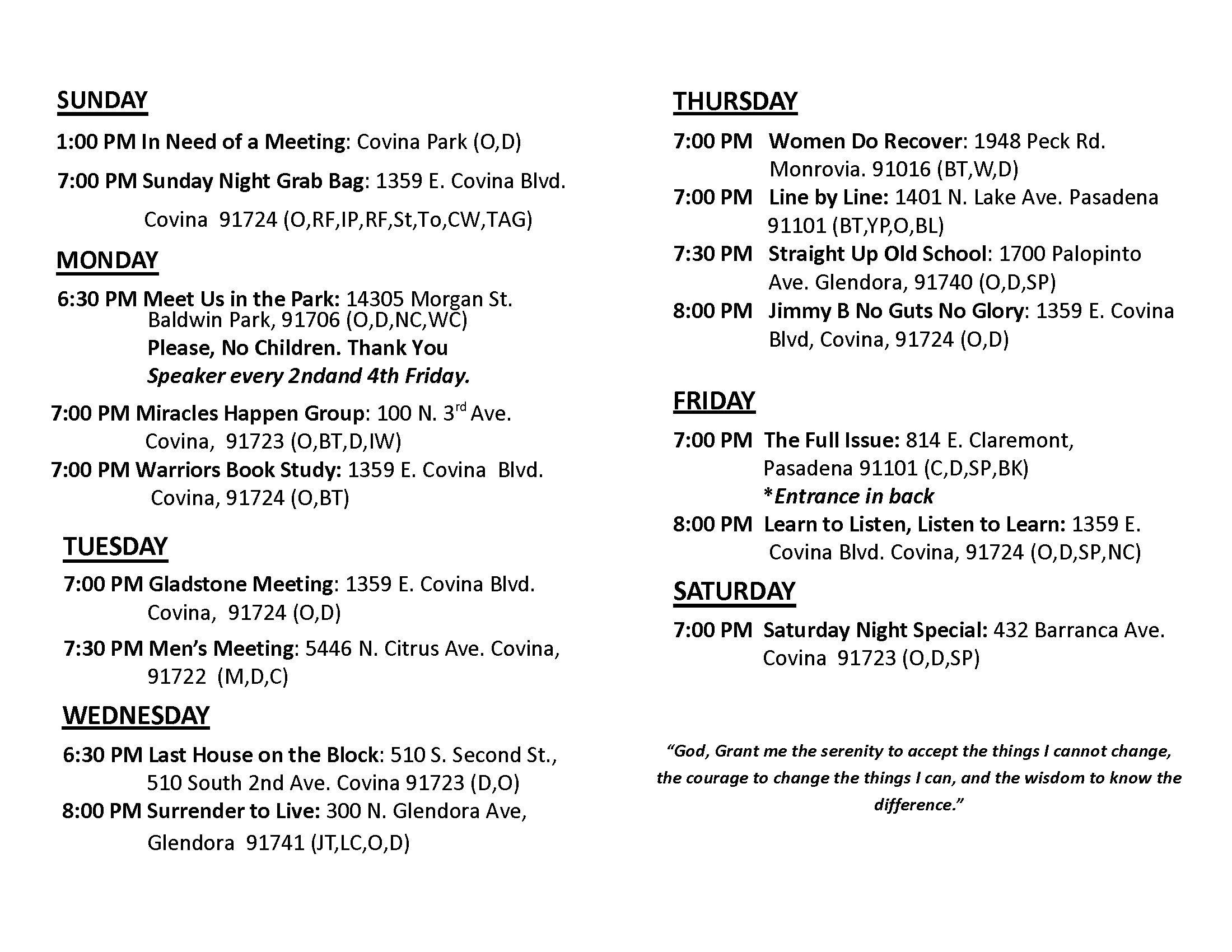 Northern Counties Areaof Narcotics Anonymous Meetings 24-Hour Helpline(800) 863-2962 Fetching... Download N.C. Print Directory